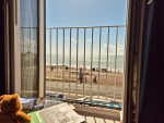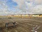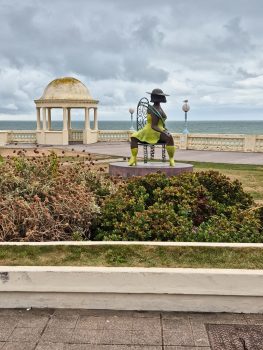 The , after Heather found breakfast, we headed away from Hastings after hardly being there, catching a bus along the coast to Bexhill. We’d visited Bexhill a few years ago when we did the duck and it had seemed a pleasant enough place to revisit for a bit. The bus dropped us off at the rail station and we went for a mooch around the little shops (avoiding the medical emergency sadly happening on one of the main streets). That walk around took us down to the sea, and the magnificent De La Warr Pavilion. There we stopped for some excellent lunch, braving the rather windy conditions (and seagulls) to sit on the outside terrace overlooking the sea.