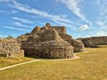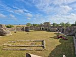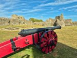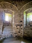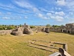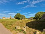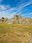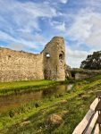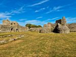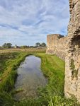 The castle is as impressive as we remembered, a range of mural towers giving it a strong appearance from outside. Inside the footings of the chapel remain, and there are signs such as the remains of fireplaces as to where a range of buildings would have once stood against the walls. The keep is still as confusing as ever, an incoherent mass (complete with very well disguised machine gun emplacements) that must have been an interesting building when complete. Unlike our last visit the (modern) stairs up to the top of the north tower weren’t in bits, so we could climb up and appreciate the views across the countryside towards the now distant see that once came much closer to the castle’s walls (and what looked like alpacas in an adjacent field).
