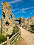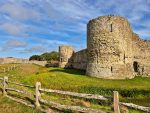 That sunshine made for a marked difference to the last time we visited Pevensey Castle nearly a decade ago. That day we’d arrived in torrential rain and not really been able to appreciate the Roman walls surrounding the outer bailey (it did brighten up but the overwhelming memory is of being damp). This time the bright sunshine welcomed us through the Roman gateway and on to the Norman castle.